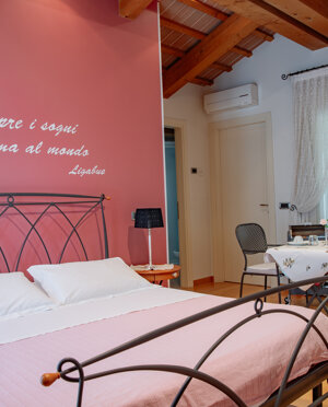90 Euro für 2 Personen/130 Euro für 3 Personen und einladendes Zimmer, bietet Platz für bis zu 3 Personen und verfügt über einen Balkon und eine Terrasse mit Blick auf den Garten. Das private Badezimmer im Zimmer ist mit Dusche, Handtuchwärmer und Bidet ausgestattet.