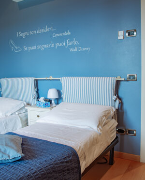 mit Doppelbett oder teilbar in zwei Einzelbetten, bieten Platz für bis zu 4 Personen. Das Badezimmer der Suite ist mit einer Wannendusche, einem Bidet und einem Handtuchwärmer ausgestattet.